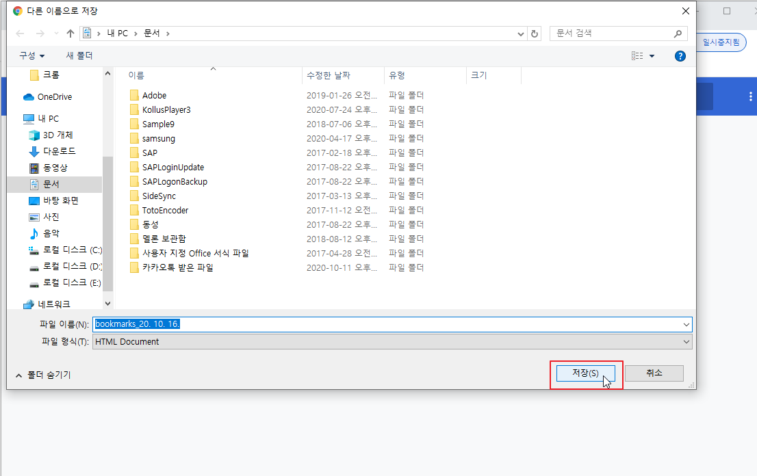 HTML 파일 북마크 하기를 선택합니다.