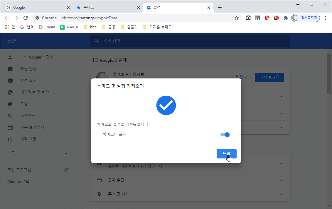 북마크 가져오기가 완료되었습니다.